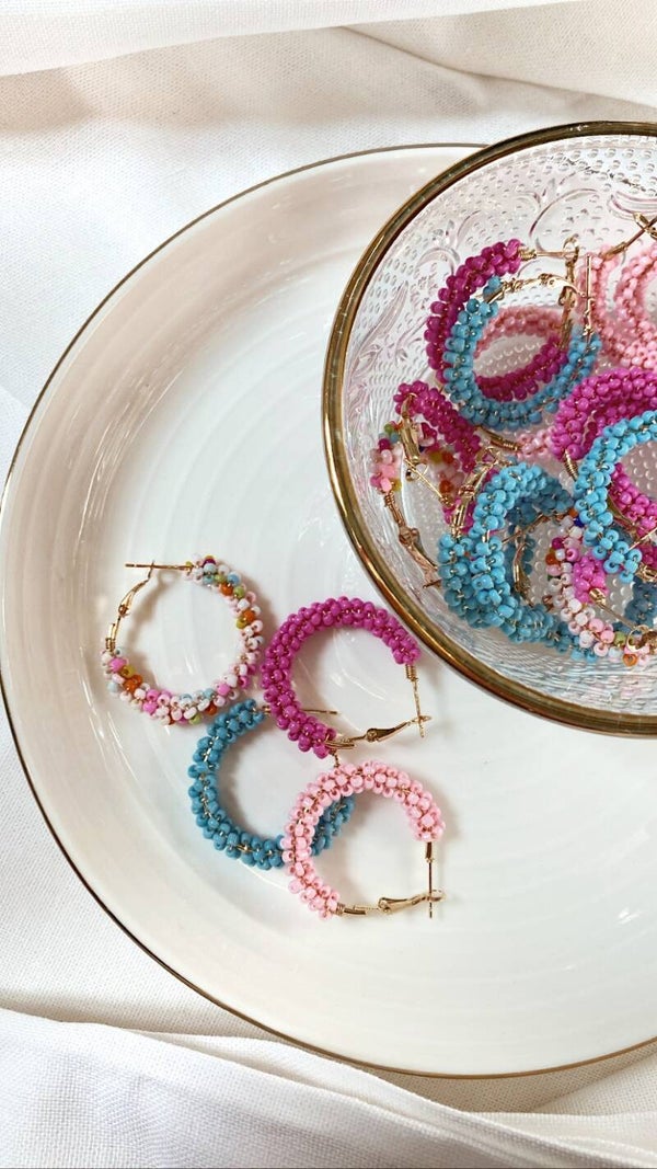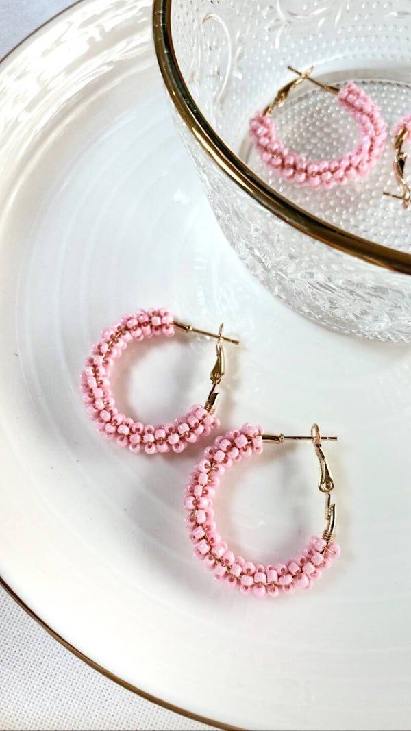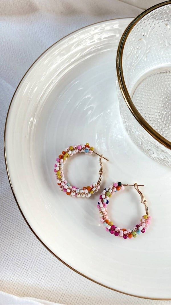 ★ Vrolijke, gekleurde kraaltjes op oorbelringen van DQ materiaal. (Ziematerialen pagina voor meer uitleg over dit soort materiaal)
